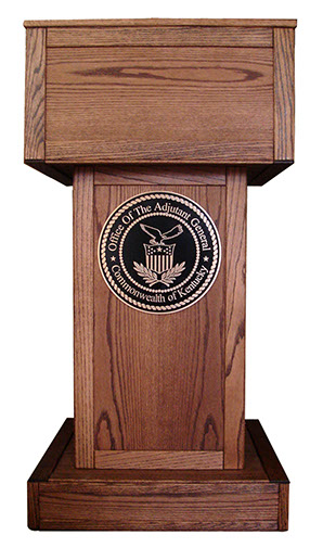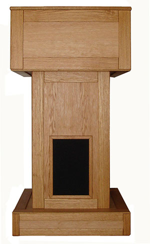 A/V shelves, door(s), sound systems, custom covers, microphones and mic holders, lights and podium plaques made from your artwork.